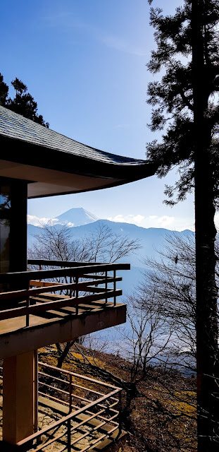 Levé 5h30 (je ne suis pas allé balayer, je sais) pour être dans le temple en avance. Et la cérémonie attaque avec un taïko démesuré, qui fait trembler les murs et le corps. Le moine frappe l'instrument avec un maillet à 2 mains ! Les moines rentrent ensuite, plus de 60, en file indienne et en chantant. Puis vient le tour des gradés, dont mon papi à la calligraphie, puis le chef, avec une canne, 95 ans nous dira t'il plus tard dans son sermon. La cérémonie dure pas loin de 2 heures ! Des chants, des sutras, des percussions, j'étais dans l'ambiance, tout allait bien. Un dernier au revoir à mes nouveaux amis d'hier, et je suis allé profiter de la nature au dessus du temple. Je crois que les tambours japonais sont bons pour le corps. La randonnée pour atteindre l'okunoin, le temple secondaire, était prévue pour un peu plus de 2h. J'aurais mis 1h10. Des chevreuils intrigués par ma marche matinale ne se sauveront qu'au dernier instant. Des cyprès, beaucoup de cyprès, gentiment alignés. Des petits temples disséminés un peu partout, avec les prières des retardataires. Et puis là haut, tout seul. La vue sur le Fuji était en contre jour, mais qu'importe, je me sens bien.
