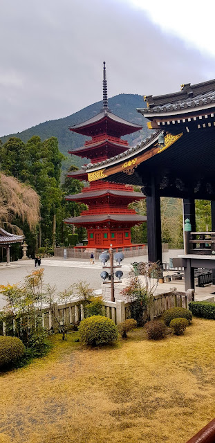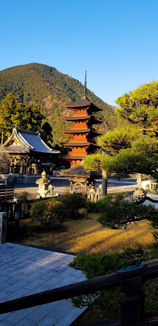 Il y aura ensuite un temple majestueux, Kuonji, le temple fondateur de l'école Nichiren Shu. C'est Koyasan, pour ceux qui s'en souviennent, mais pour une autre secte bouddhiste. Et après la volée de marches, 280, on arrive on temple, et on se sent bien. J'ai demandé au bureau des calligraphies de compléter mon album panini, une dame lève la main mais un vieux moine l'intercepte. Il veut la réaliser lui même. Pendant ce temps je discute un peu avec un autre moine, pour lui expliquer ce que je fais ici et tout ça. Très compliqué pour l'instant de mettre les formes dans mes phrases. Je vais droit au but, en espérant que ça ne choque personne. Au contraire, ils sont toujours très intéressés par ma démarche. Après une longue discussion sur le bouddhisme, la vie, et après m'avoir offert la calligraphie, je suis prié de séjourner sur le parking du temple, autrement réservé au personnel, pour pouvoir assister à la cérémonie du matin. Et je ne me fais pas prier justement.
