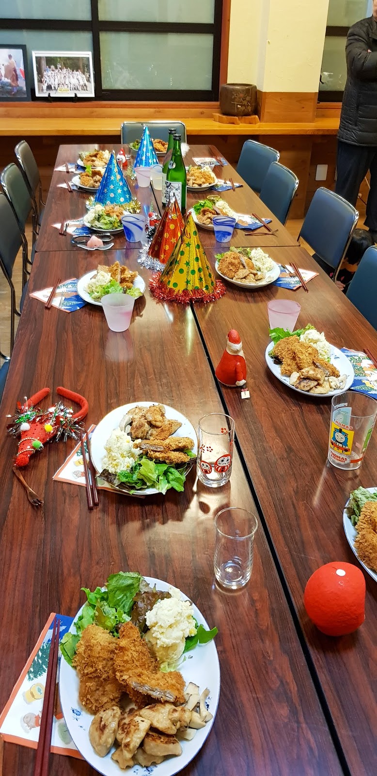 Pour ce qui concerne les fêtes. Autant vous dire que Noël, dans un temple bouddhiste, c est bref. Le 25, j avais badminton. Il y avait du poulet et des gâteaux pikachu. Parce que a Noël on mange du poulet au japon.