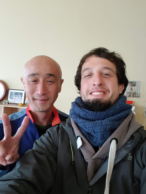 Le retour de takeshita san est aussi digne d'être souligné. Ce monsieur qui m a rapidement appris quelques ficelles avant de partir faire le pèlerinage est de retour. Je ne saurais pas vous le décrire, il est assez unique. Il se moque de mes couches de vêtements, parce que lui il en a que 2 ! Mais il passe la journée a dire qu il fait froid. Alors que l'on est en train d'abattre un chêne de 40cm qui fait de la résistance, il mettra sa tête à 20cm de la coupe de la Tronçonneuse pour verifier que tout est bien coupé. Il nous soutiendra avec shin san (l autre volontaire japonais) qu on peut descendre au tas de bois et aux ateliers avec le ptit camion plein, en marche arrière parce que ca prend trop de temps a faire les manoeuvres pour le demi tour. Resultat, le ptit camion dans le fossé et 4 personnes pendant 2 heures pour le sortir... et pourtant, je l'aime bien, malgré les quelques sueurs froides qu il vous donne quotidiennement.