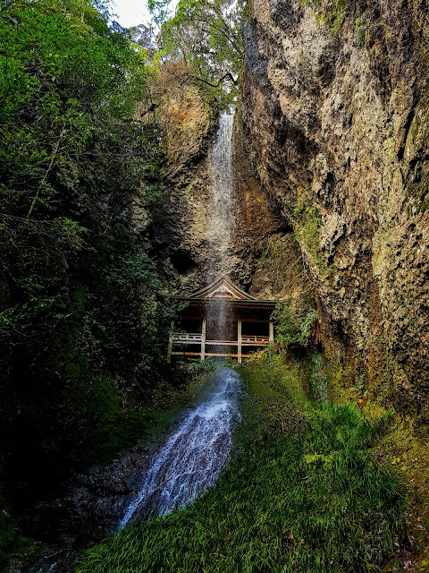 Pour ne pas faire de jaloux avec Bouddha, non parce que la jalousie c'est une des pires choses pour le bouddhisme, impossible de s'élever avec ce boulet là sur les pieds, je suis allé voir un temple. Comme ça, un partout, balle au centre. Et ce temple était particulièrement bizarre ! Tout perché, mélangé avec un sanctuaire, avec une partie dans la montagne sous une cascade. On ne sait plus à quel saint se vouer, mais le tout est très beau !