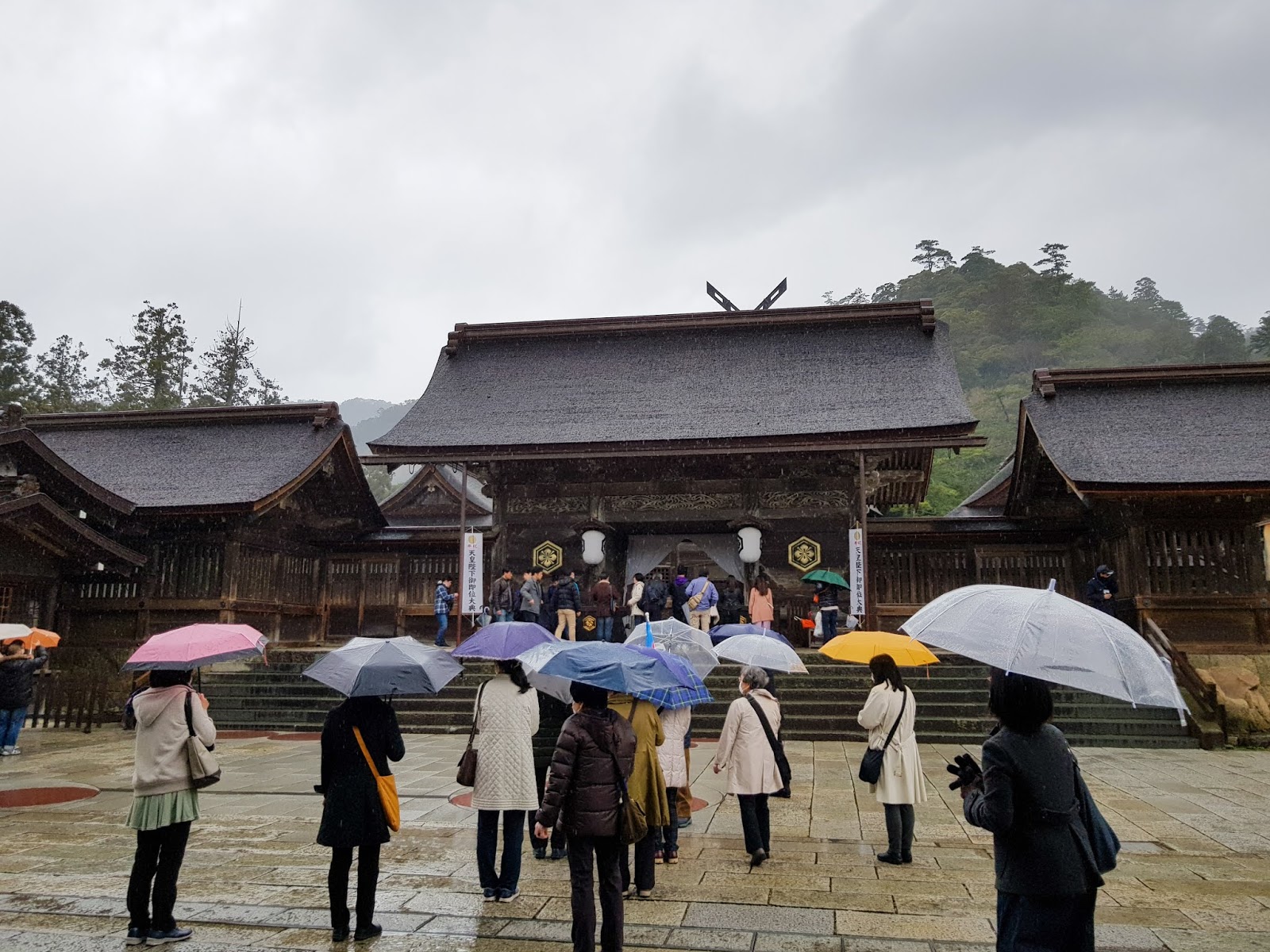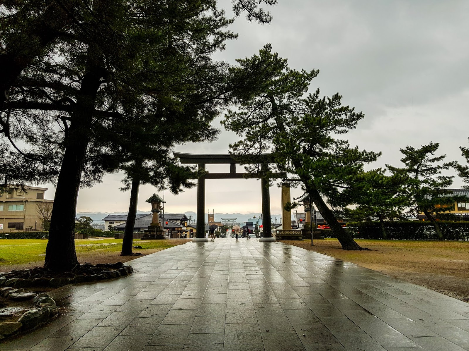La première étape de la journée est toute proche. Le Sanctuaire d'Izumo, le repos des Dieux. Tous les ans, ils viennent passer des petites vacances ici, tous les dieux du Japon, et ça fait du monde ! Ils arrivent par le tori sur le rocher, des photos du coucher de soleil du dernier article. En gros j'ai dormi sur le tarmac quoi ! La pluie créait une ambiance franchement particulière sur le site, je croyais que les photos n'allaient rien rendre et finalement, je trouve le résultat plus ... Solennel!