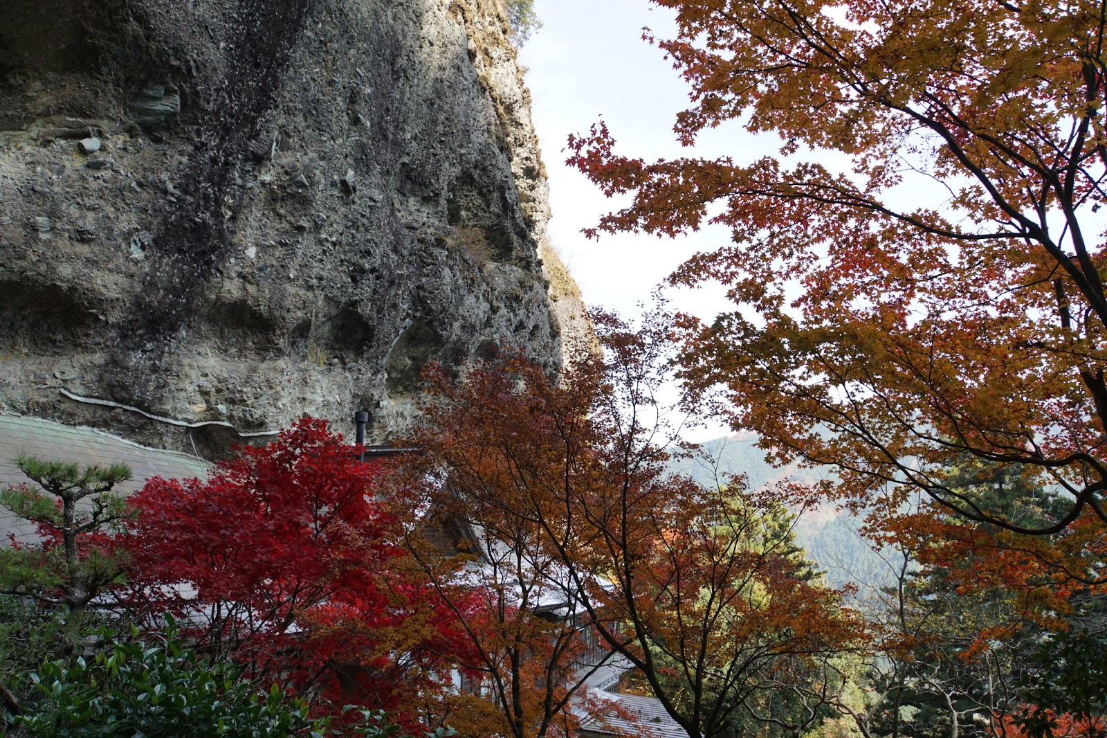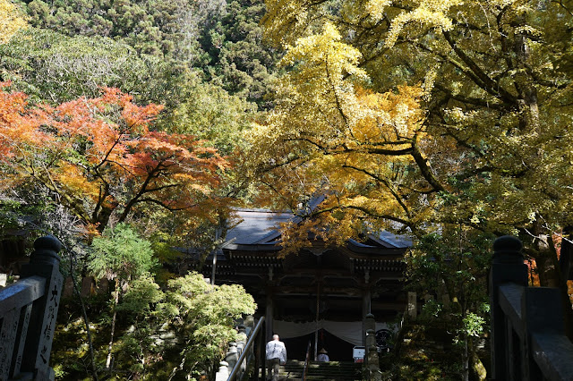 La ligne de crête, à couper le souffle. La redescente au milieu des arbres centenaires, magique. Les multiples voies au milieu de la forêt qui mènent toutes au même point, intriguant. Le temple coincé contre la falaise, mystérieux. Et puis enfin, un grand portail. Le temple 45. Perché sur ses falaises, à même le rocher, il domine toute la vallée, et expose fièrement ses feuilles d’automne. Je me serais bien arrêté un moment, pour profiter de l’instant, de l’espace, pour laisser naitre l’étoile au milieu du chaos, mais voilà. Deux cars de pèlerins d’un coup.