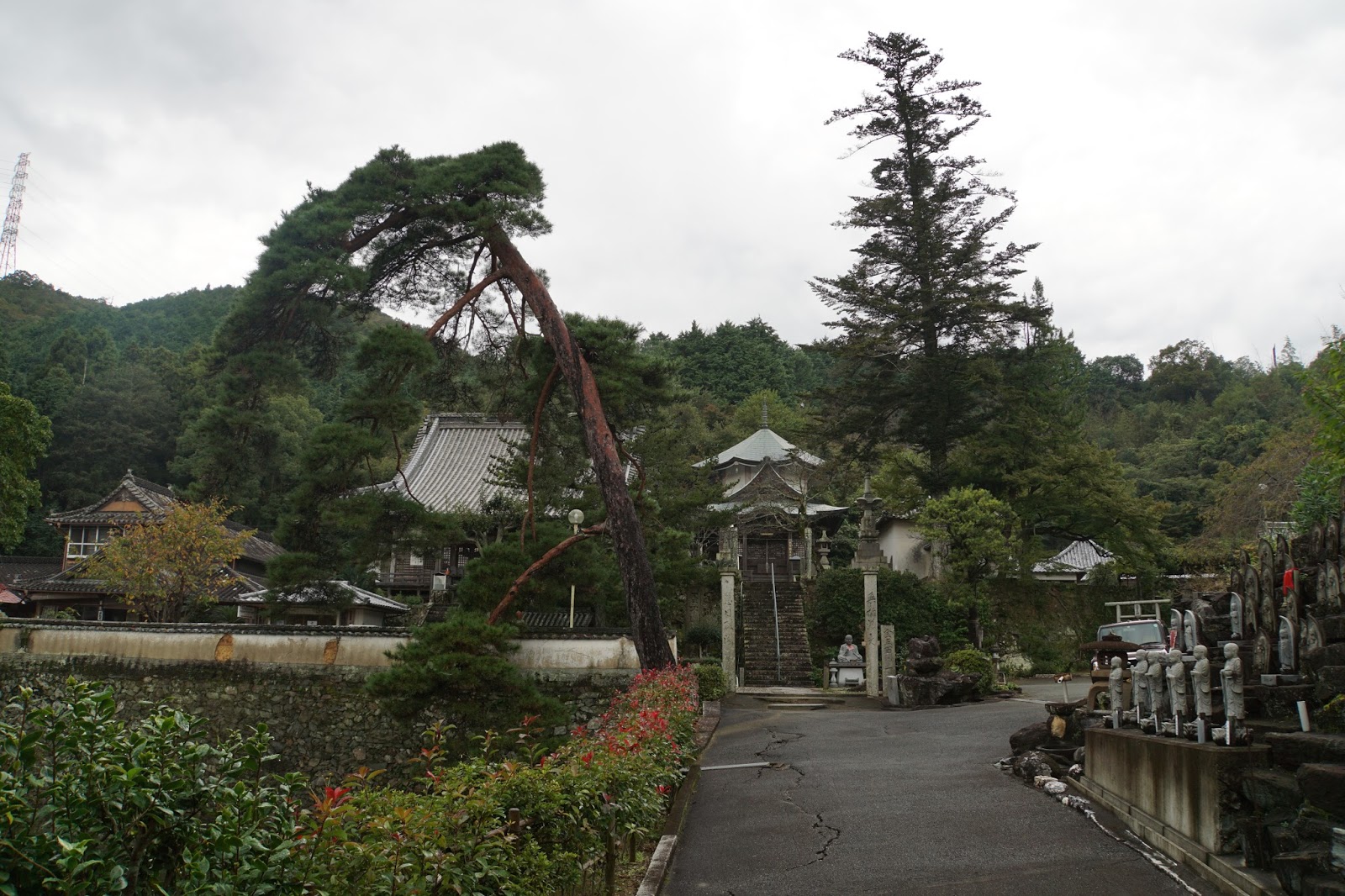 En route pour le temple 13, il ne portait pas malheur, mais le pauvre est séparé en deux par une route on pourrait dire départementale pour nous. C’est assez surprenant pour nous français qui tapons sur toutes les religions et qui ne voulons pas de nouveau sacré, surtout s’il comporte un minaret, mais au Japon, le sacré est partout. Pas une rue sans autel, grand ou petit. Et le bouddhisme et le shintoisme sont tellement copains qu’ils partagent des temples. Vous avez donc un portail et un tori pour rentrer, et chacun vit sa vie. J’ai vu des églises avec des petits autels shinto devant aussi, pas de problème.