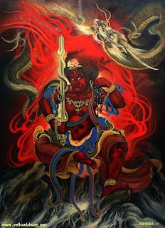 Le prêtre commence à chanter, bientôt accompagné par un acolyte, dans le fond de la pièce. Une flammèche est déposée entre les bûchettes de bois, et aussitôt le feu crépite. On voit apparaître, disposés tout autour de la salle, des dizaines de statues dorées, toutes à l’image de Fudo Myoo, le flamboyant de tout à l’heure. Le prêtre jette des feuilles dans les flammes, et une épaisse fumée se dégage. Une bonne partie est captée par le grand “bol” du plafond, mais une autre passe à côté, et envahit l’endroit. Le taïko résonne alors que les religieux chantent de plus en plus fort, et de plus en plus vite. Ponctués de sons de bols tibétains, cette mélodie vous imprègne aussi sûrement que la fumée autour de vous. Il n’y a bientôt plus de genoux qui pleurent, plus de monde fou à l’extérieur, plus de monde fou dans votre tête. Il n’a plus que cette flamme, de plus d’un mètre maintenant, qui grandit, encore et toujours. On lui offre des bûchettes réparties en six fagots, pour représenter nos six sens pour percevoir le monde l’ouïe, le toucher, l’odorat, le goût, la vue et la conscience. Puis on brûle les trois liens qui sont les poisons de la passion (l’attraction, la répulsion et l’erreur). En plus de cela, on fait des offrandes d’encens, de fleurs, de condiments ou d’huile pour remercier Fudo Myoo pour son aide. Il est en effet en train de nous purifier de nos désirs, la racine de notre mal.