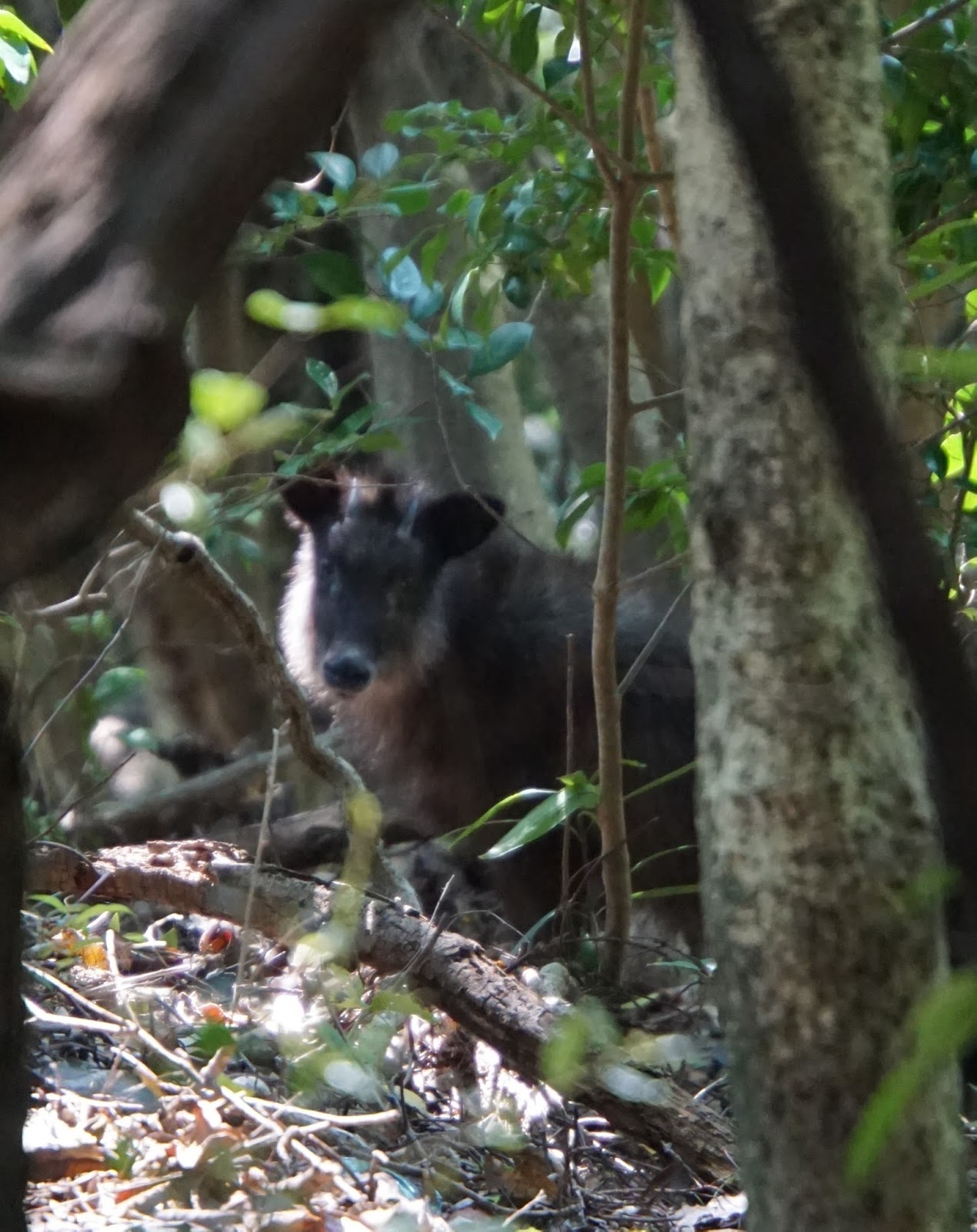 Il fallait rester sur mes gardes, car j’ai croisé deux trois bêtes flippantes. Serpents, mantes religieuses qui vous attaquent quand vous êtes trop proche de la branche sur laquelle elles sont posées, et une bête non identifiée. Après recherche, il s'appelle le saro du Japon. Très rare, menacé d'extinction. Mais que voulez vous, mon animal totem doit être un frère cartusien à lui.
