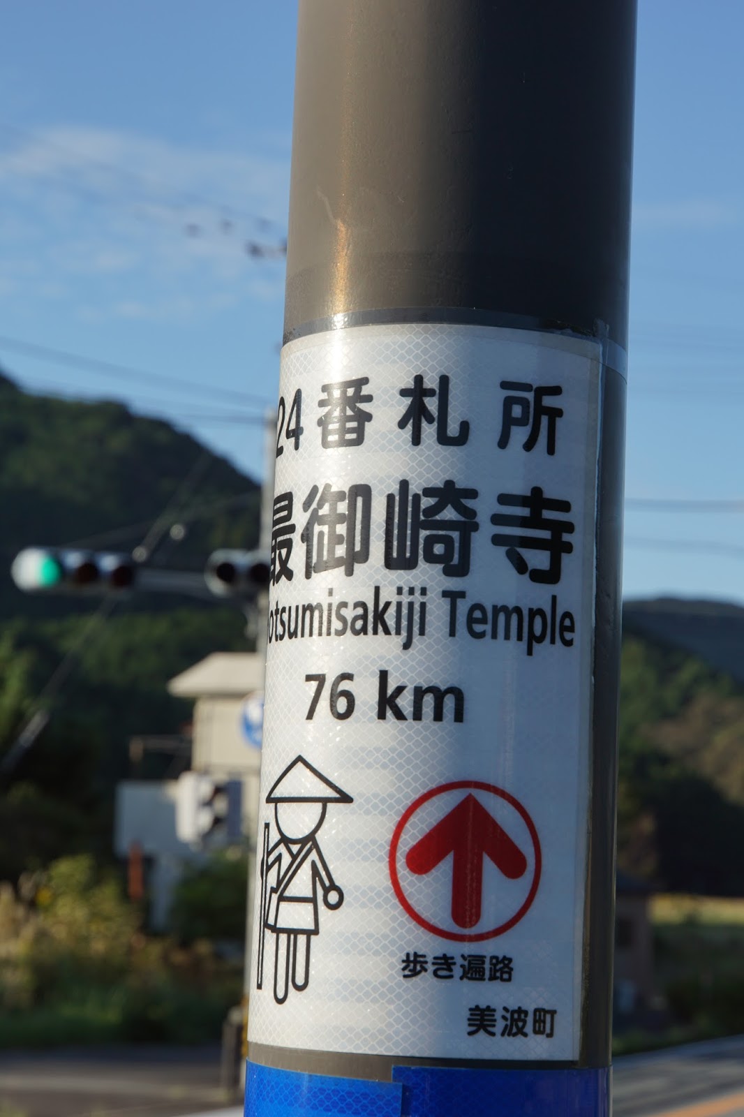 J’avais l’intention de m’éloigner de la grande route pour apprécier le paysage côtier de Shikoku, avant de l’affronter pendant pas loin de 20 temples je crois. Le premier panneau croisé vous met dans l’ambiance, le prochain temple, c’est pas tout de suite tout de suite !