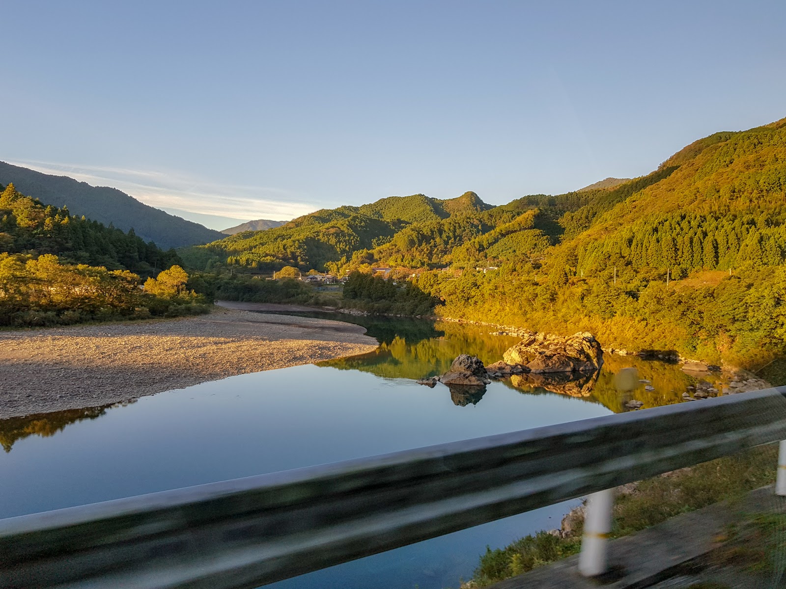 On commence par un petit déjeuner de héros, avec un retard de 2 min d’un japonais qui s’est immédiatement confondu en excuses. Soupe miso (algues/tofu), poisson frit, omelette riz. Quelques mandarines pour la route, et des onigiris pour le déjeuner (des boules de riz fourrées). Quand j’ai annoncé mon planning, ils m’ont donné un onigiri supplémentaire, en me disant que j’en aurais besoin. Et ils avaient raison. La dame a essayé de réserver le logement en temple pour nous 4, sans réponse. Elle m’a dit d’essayer plus tard.